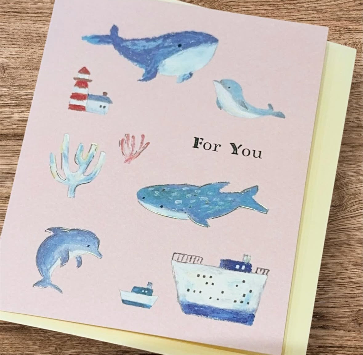 台灣藍色鯨魚水彩風系列心意卡 - For You