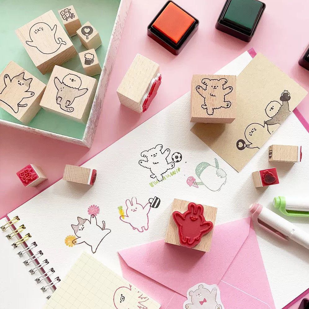 日本 I Love Stamp 木製印章 - 送花的熊仔