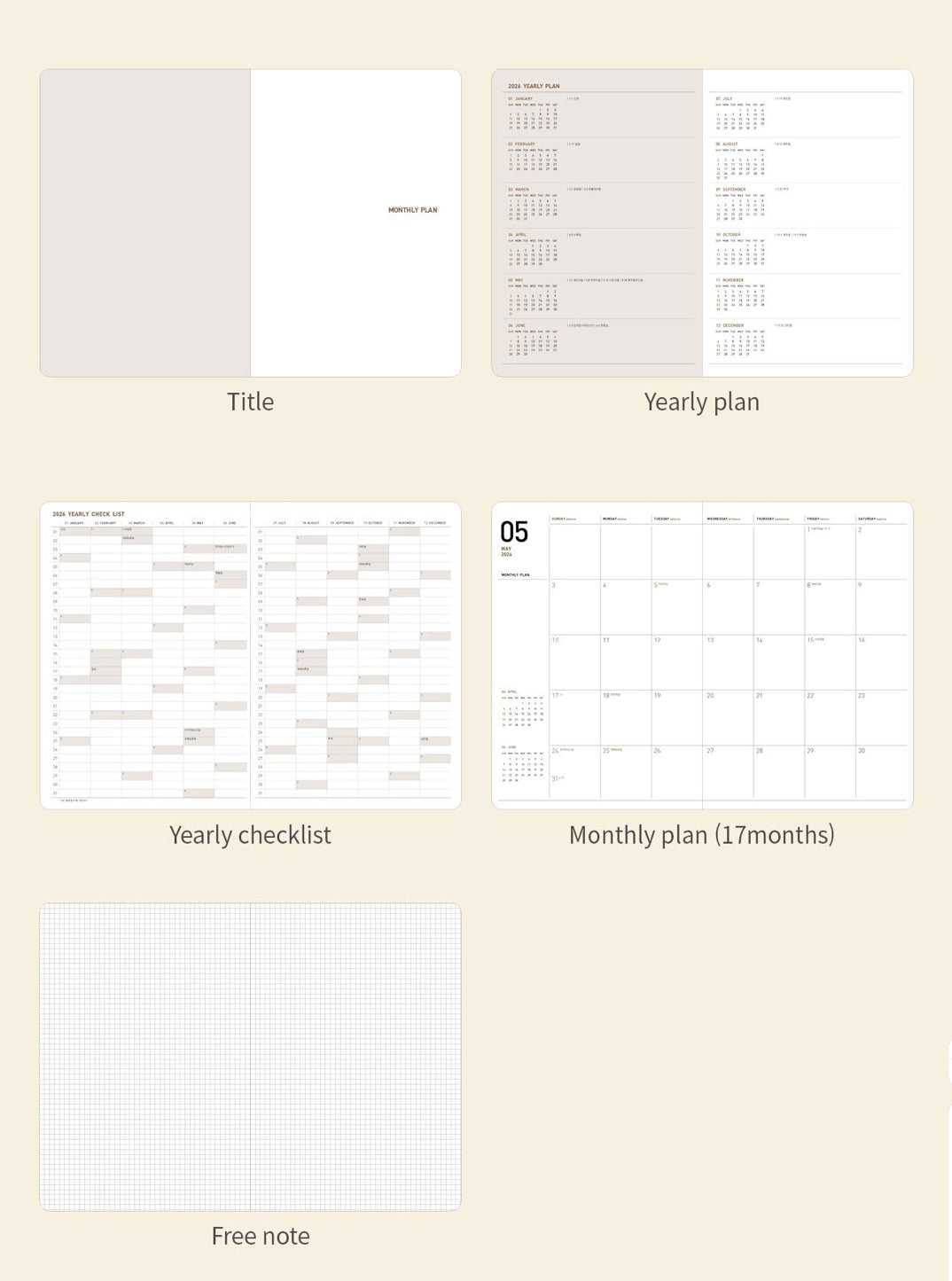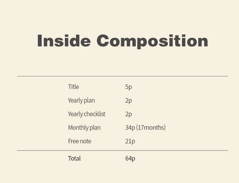 內頁: Yearly Plan 2 頁,Monthly Plan 34 頁,Free Notes 21 頁
