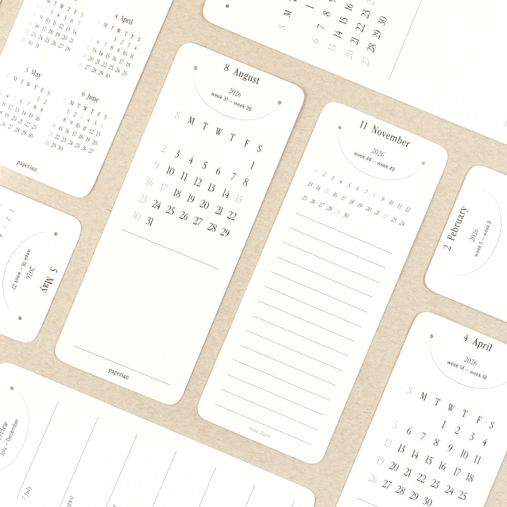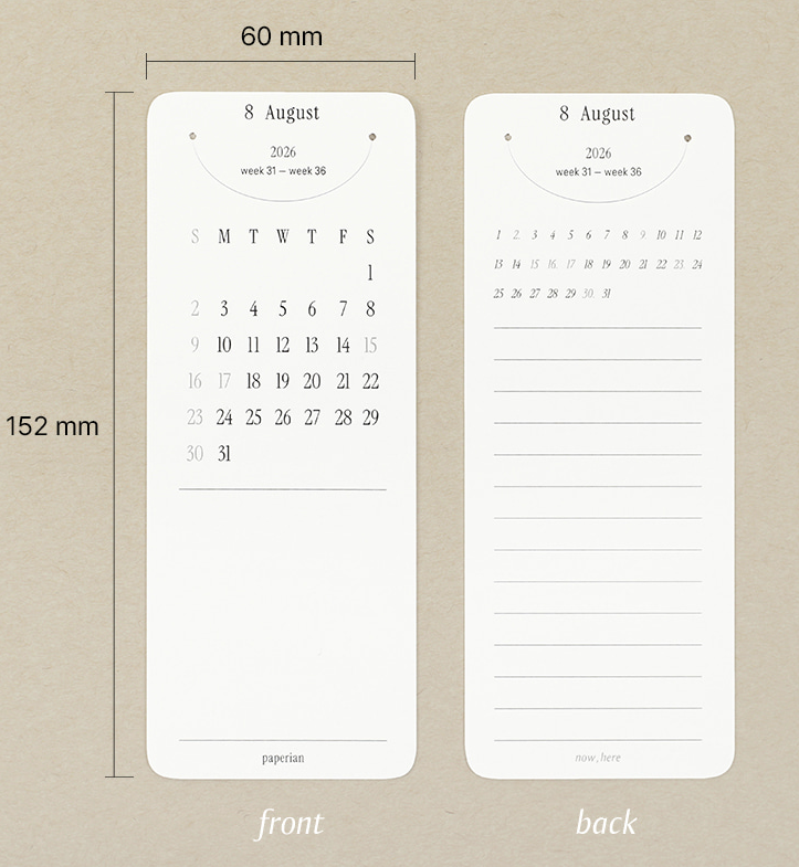 流動的月曆卡,是書簽也是索引。正面和背面均列出整月及書寫空間: