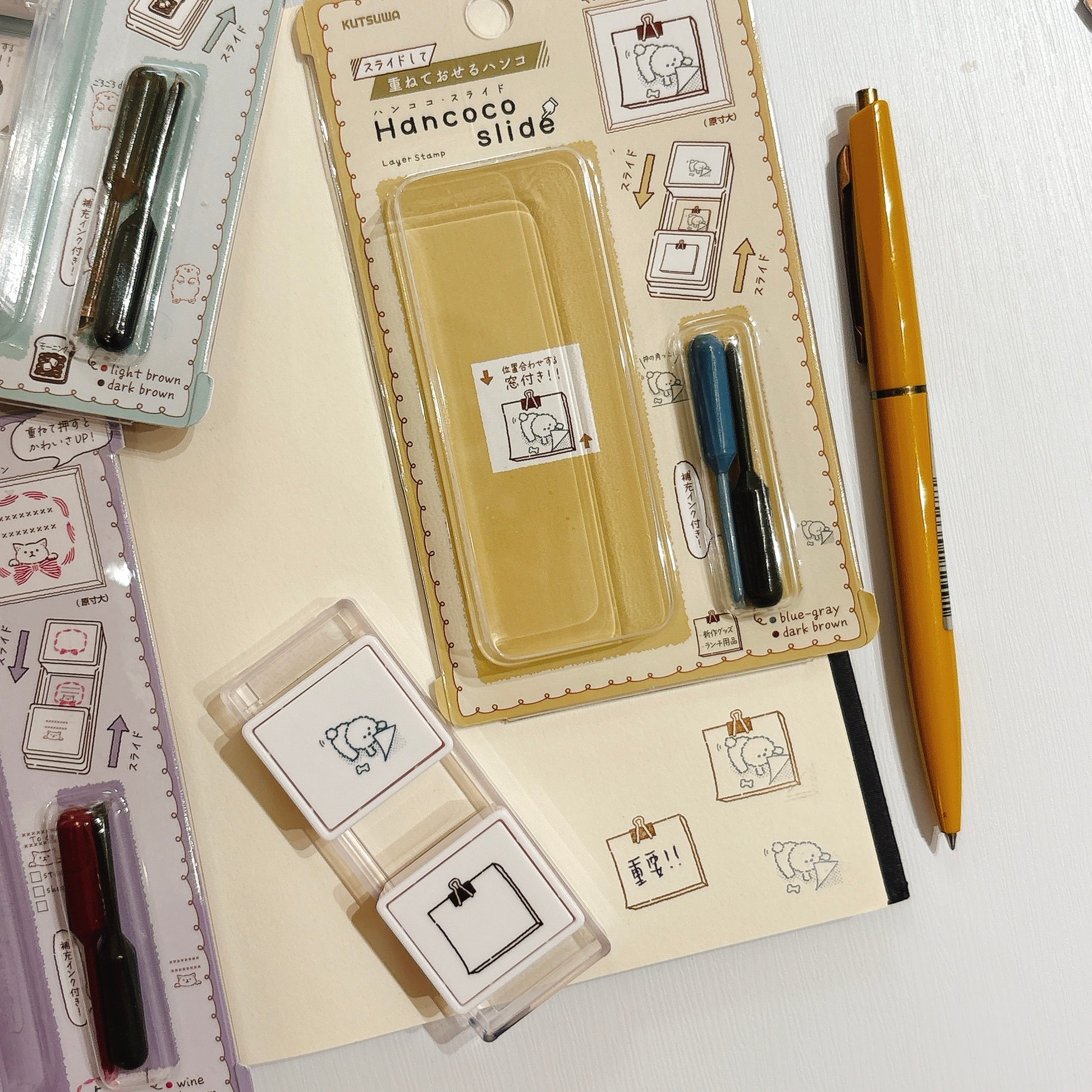 內附補充墨水‼️日本 Slide Stamp 向下推·向上推雙色印章 - 下一頁狗狗