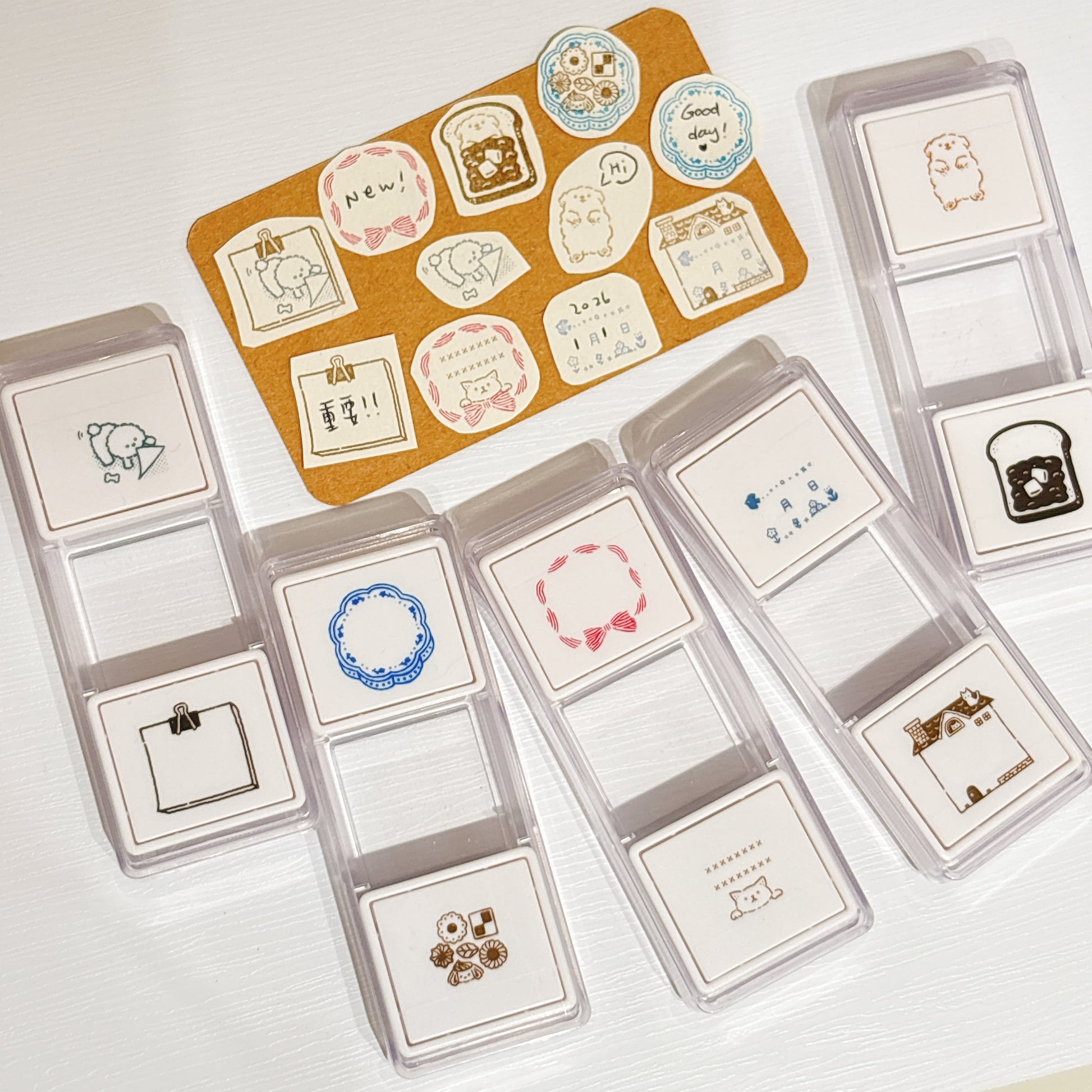只需簡單「滑動」,即可在同一位置精確堆疊兩種不同的圖案。透過外殼的透明「窗口」輕鬆對準,輕輕一按,任何人都能隨手創作出可愛的雙色設計。印章也單獨使用,或反覆疊蓋玩轉各種趣味組合。