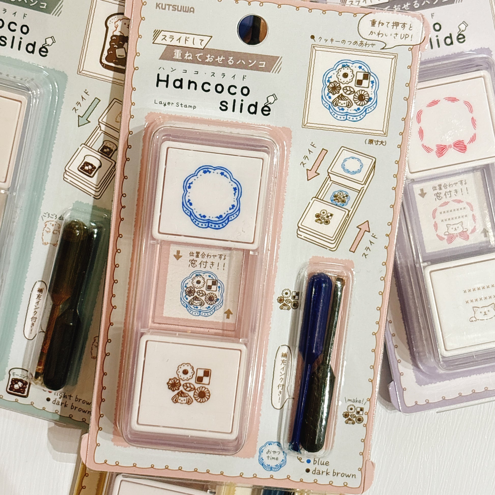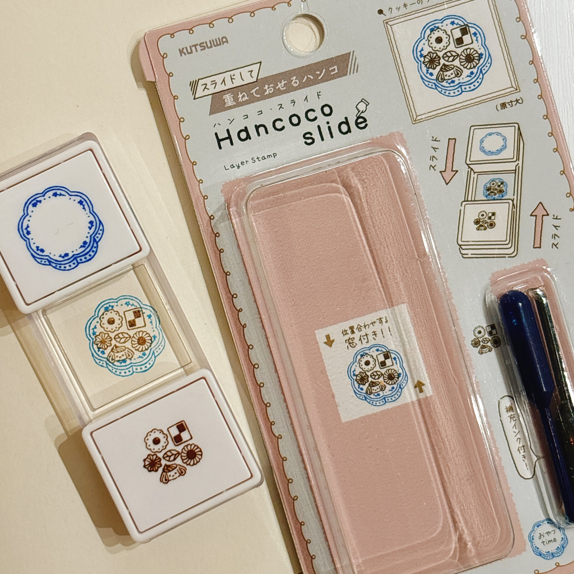 內附補充墨水‼️日本Slide Stamp 向下推·向上推雙色印章 - 藍罐曲奇