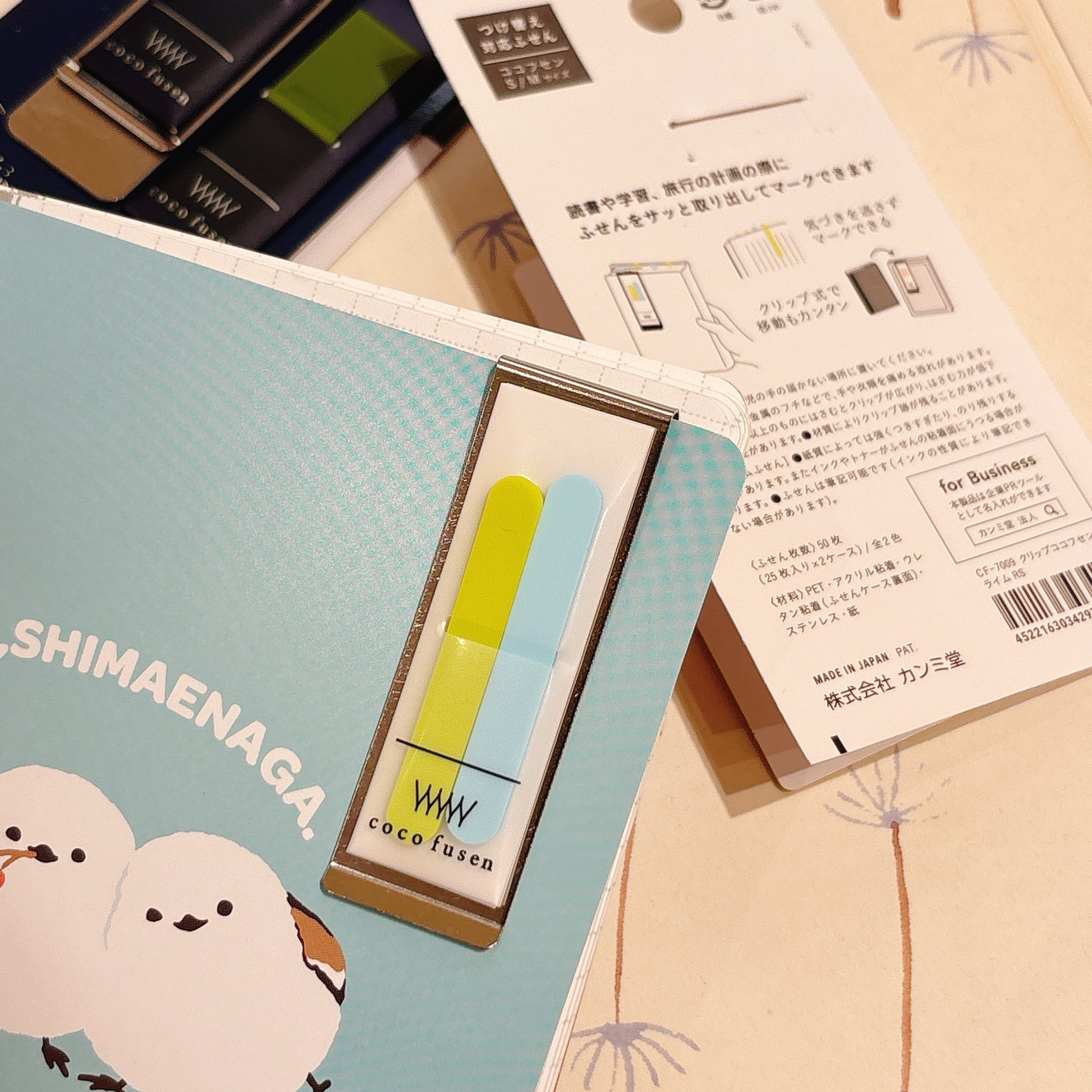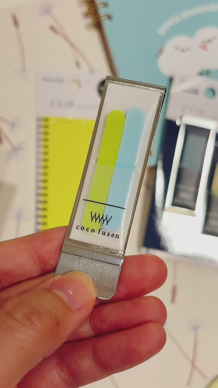 Clip Coco Fusen 這款附在不銹鋼夾上的便利貼組合,再次刷新了便利貼的設計。方便的書夾式可以輕鬆地附加到書籍或筆記的封頁,方便隨時使用,而不需要額外的儲存空間,如鉛筆盒或小袋子。書夾子是可重複使用的,每個組合都有1+1替換裝。