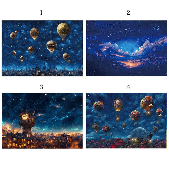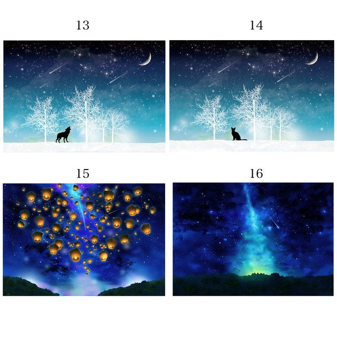 來自日本插畫師Clover R 的明信片套裝,以星空夜空變幻莫測的天空深夜作主題。