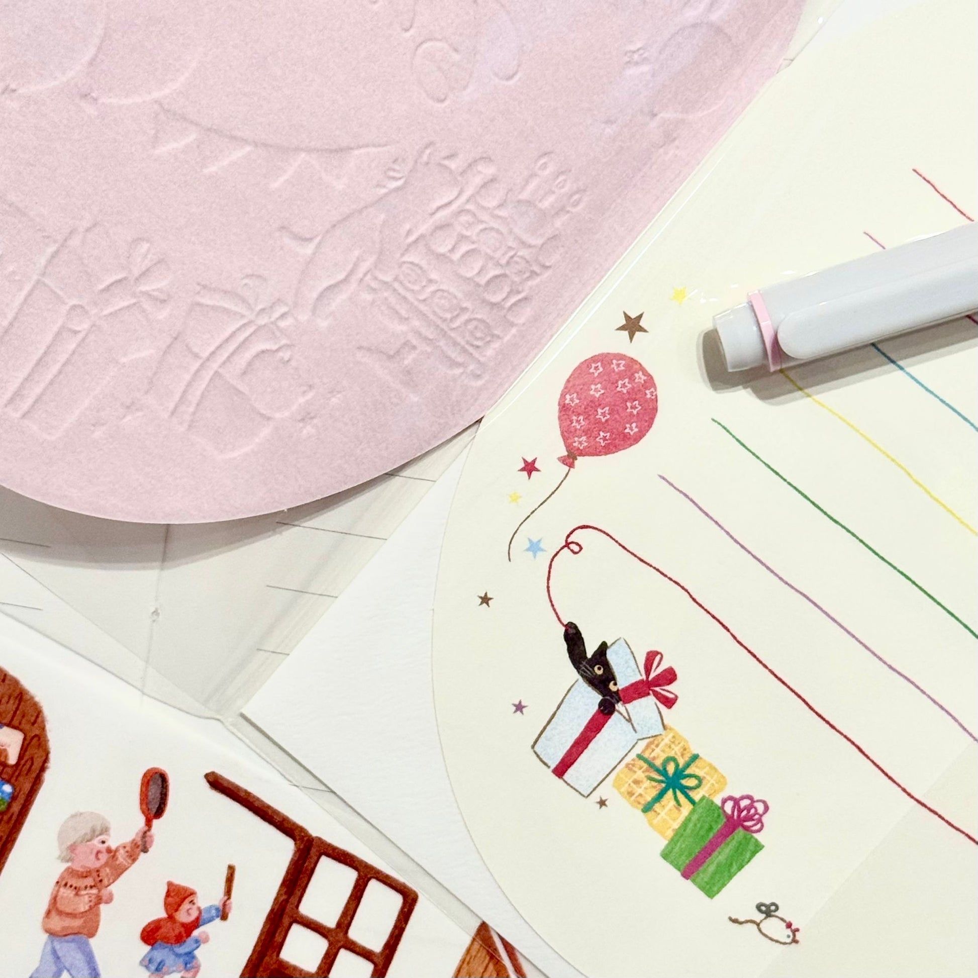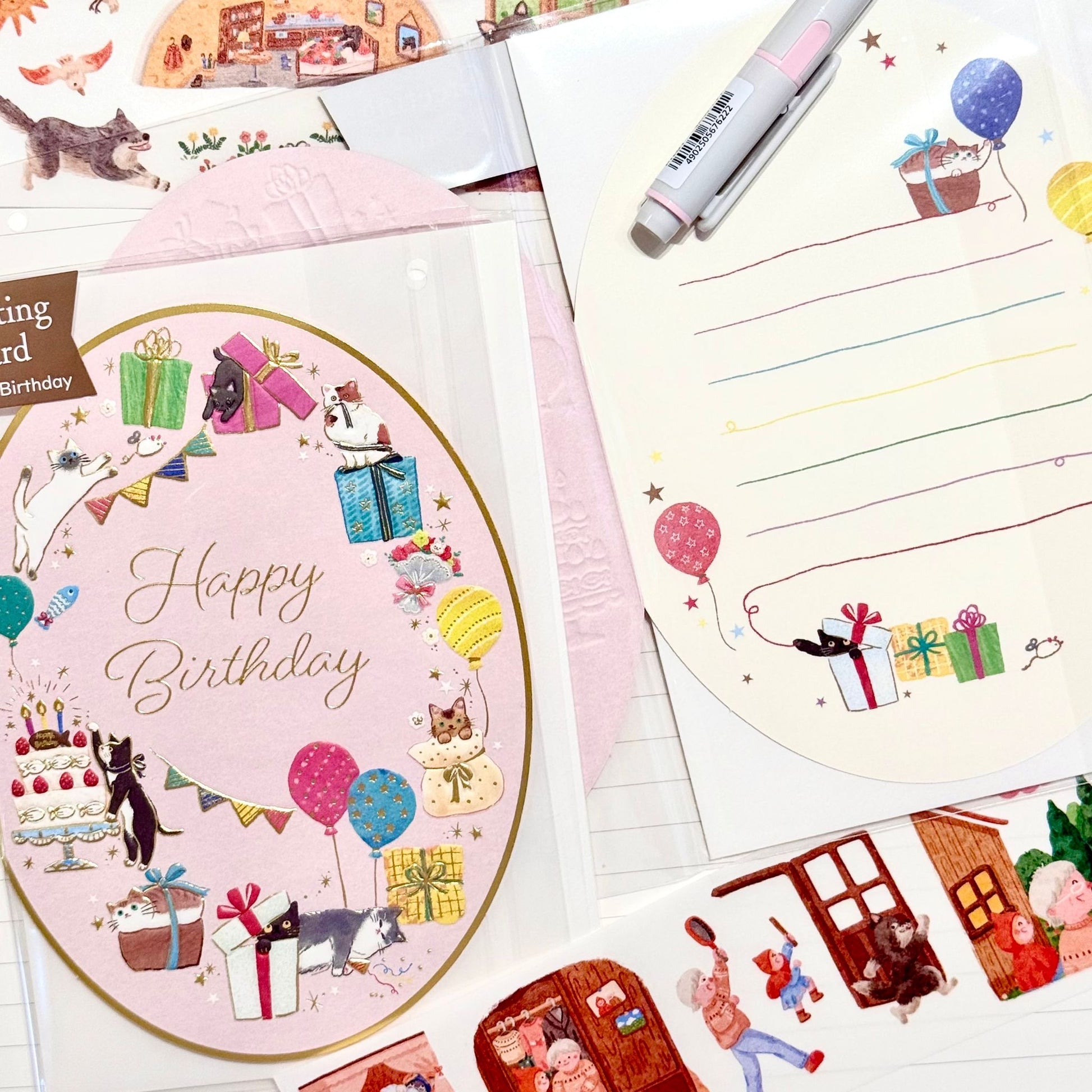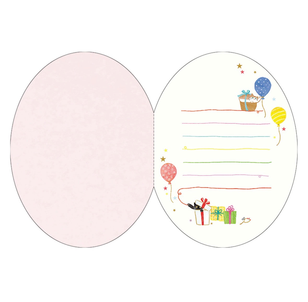 可愛動物金箔熨壓橢圓形心意卡 - 貓咪的happy birthday
