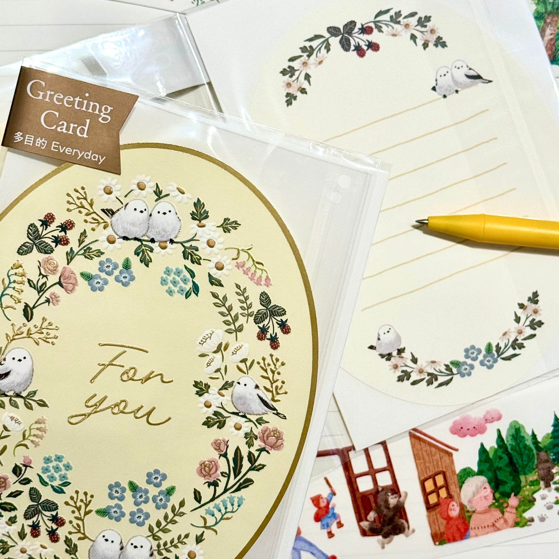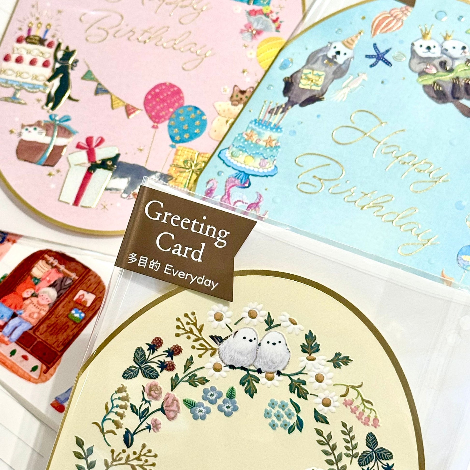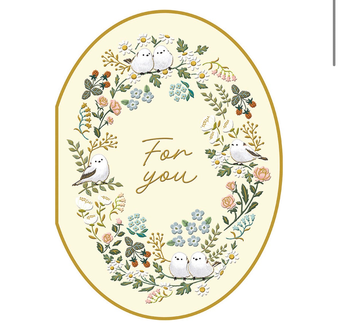 可愛動物金箔熨壓橢圓形心意卡 - 雪鳥的happy birthday