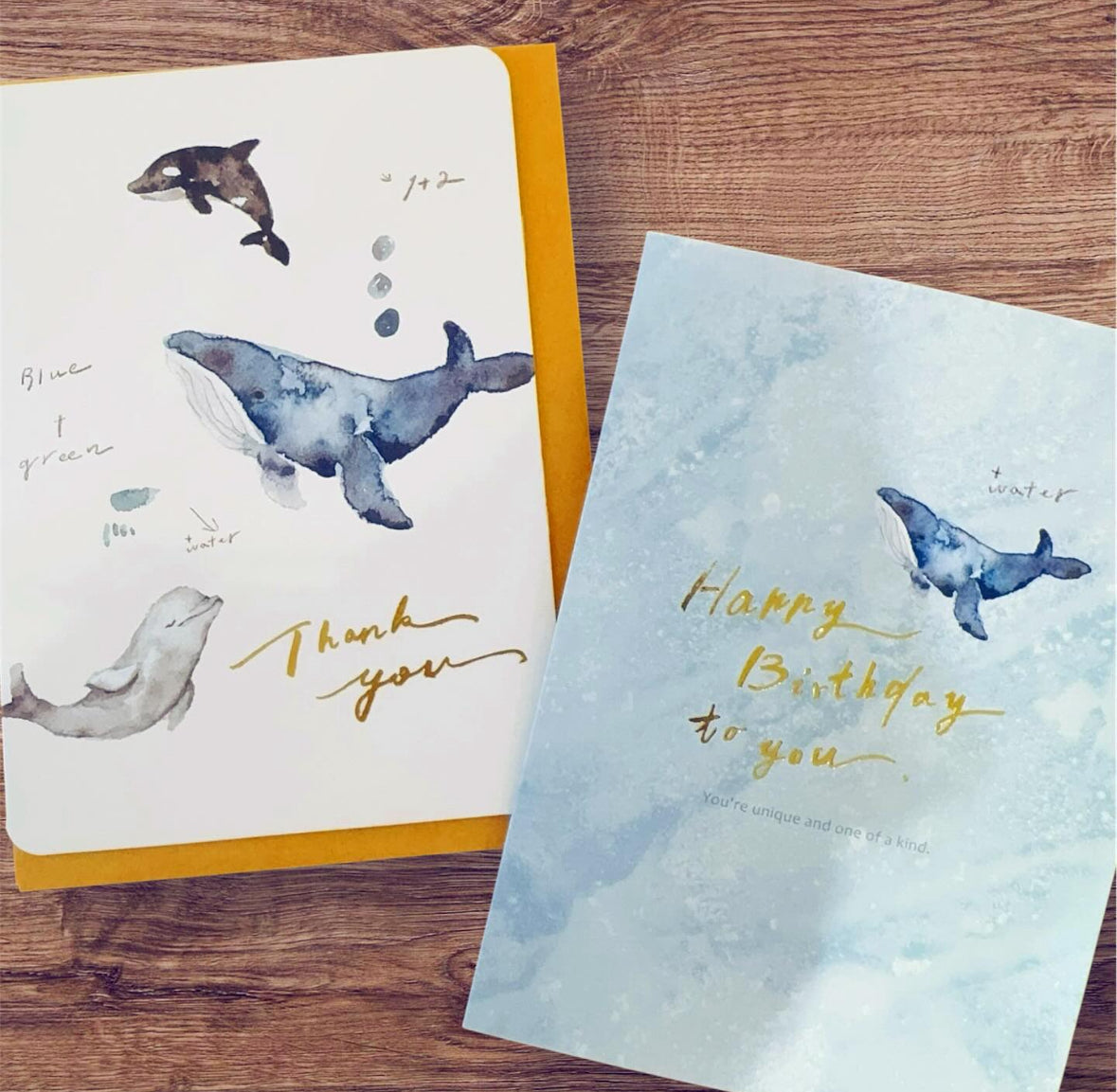 台灣藍色鯨魚水彩風系列感謝卡 - Thank You