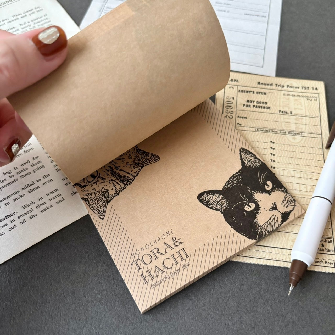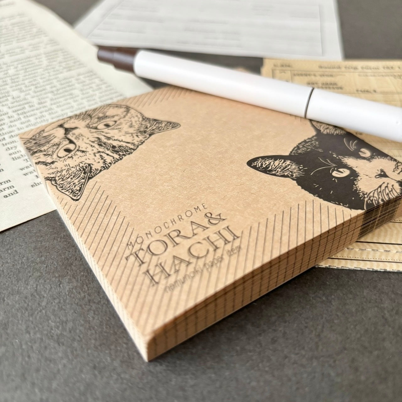 日本the Neko-noki 貓咪紙品: 一雙貓咪牛皮色便條磚