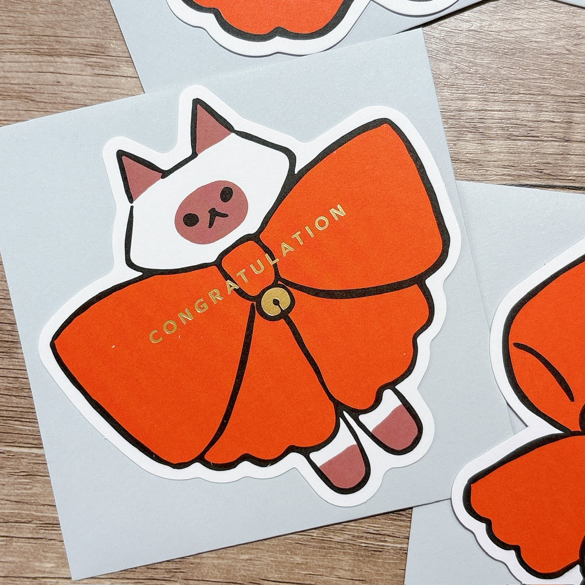 韓國插畫家썸켓츠心意卡系列 - 大蝴蝶結🎀的貓咪 - Congratulation