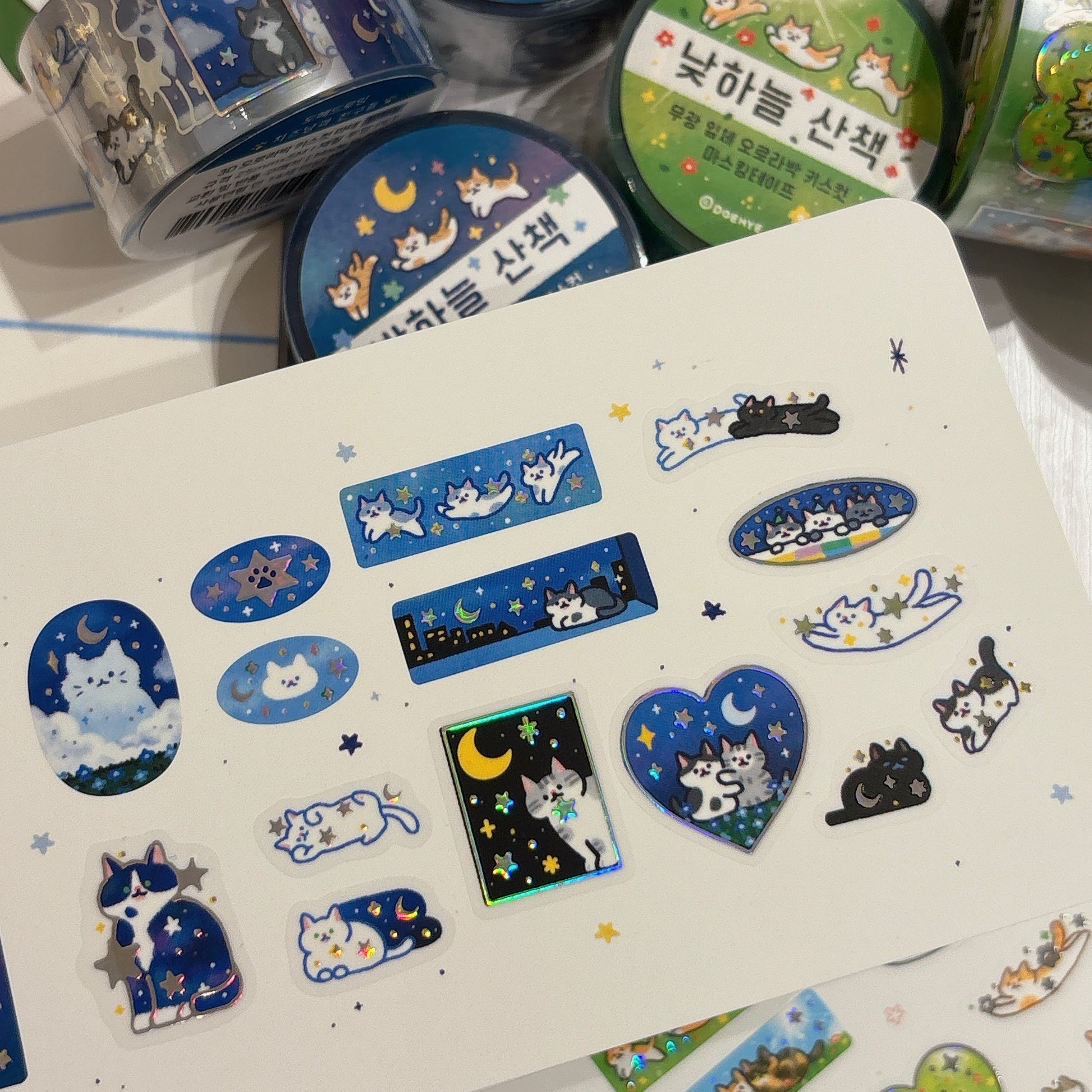 韓國 Doehye Drawing 貓咪四部曲卷裝貼紙 :第一部曲 - 夜遊貓咪歷險