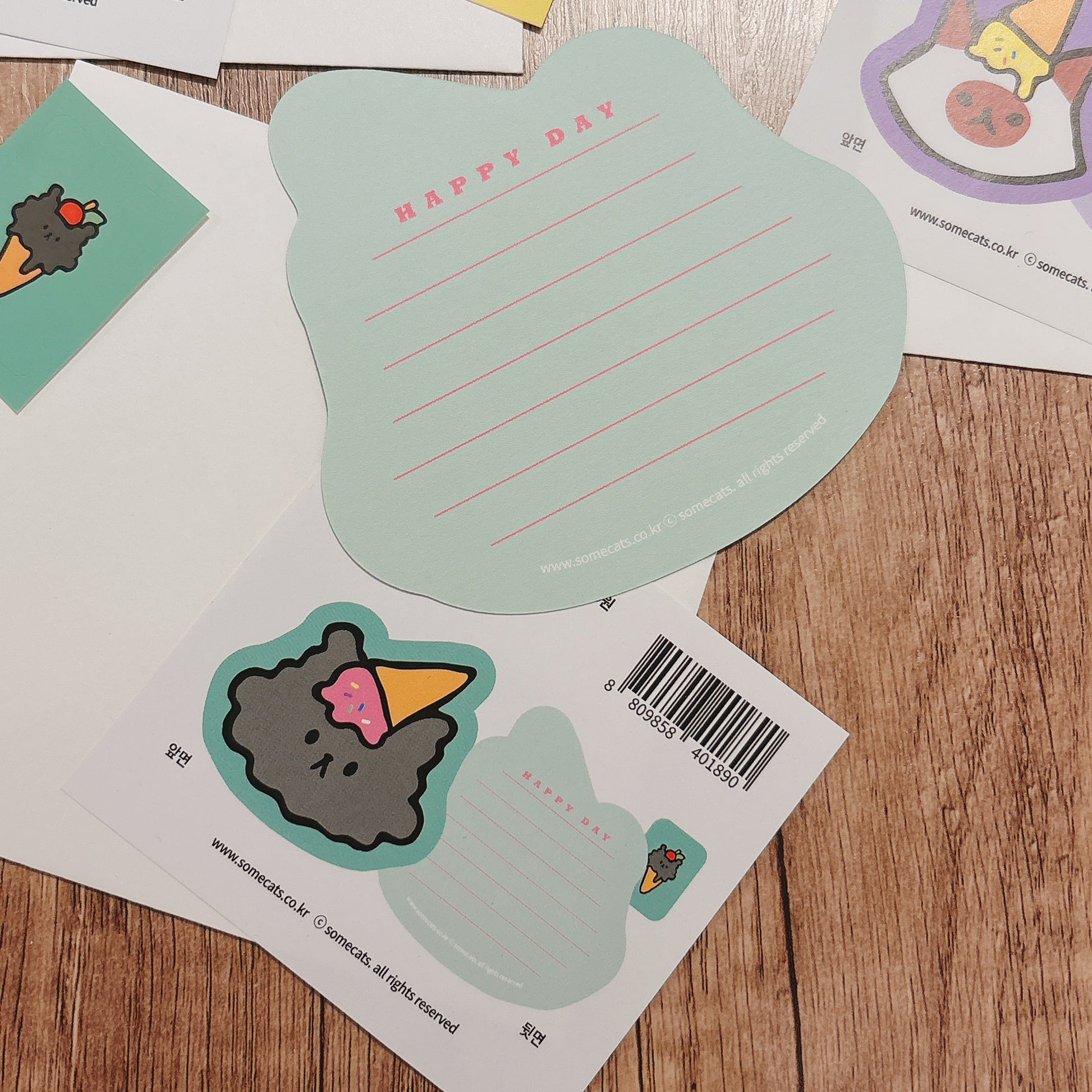 韓國插畫家썸켓츠心意卡系列 - 士多啤梨雪糕🍦灰貓咪