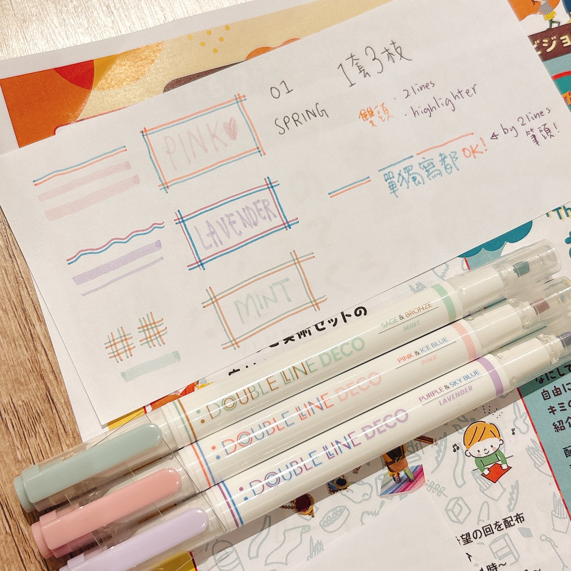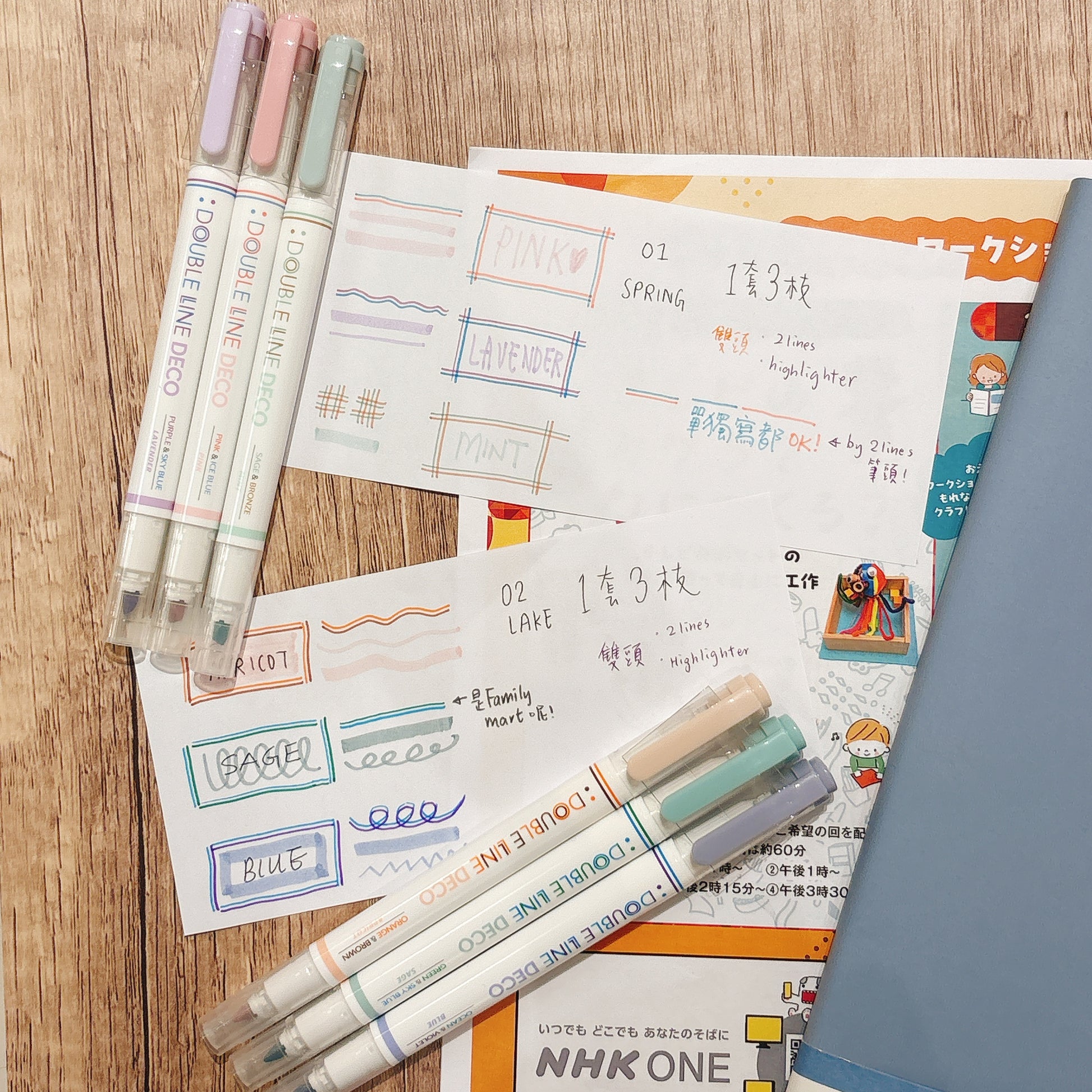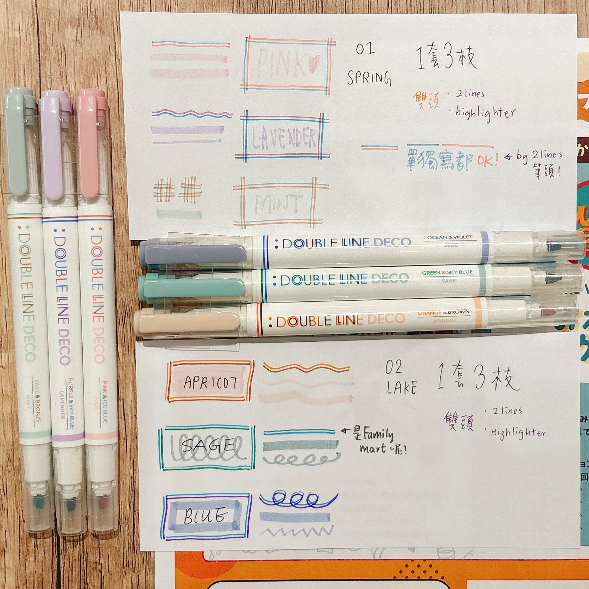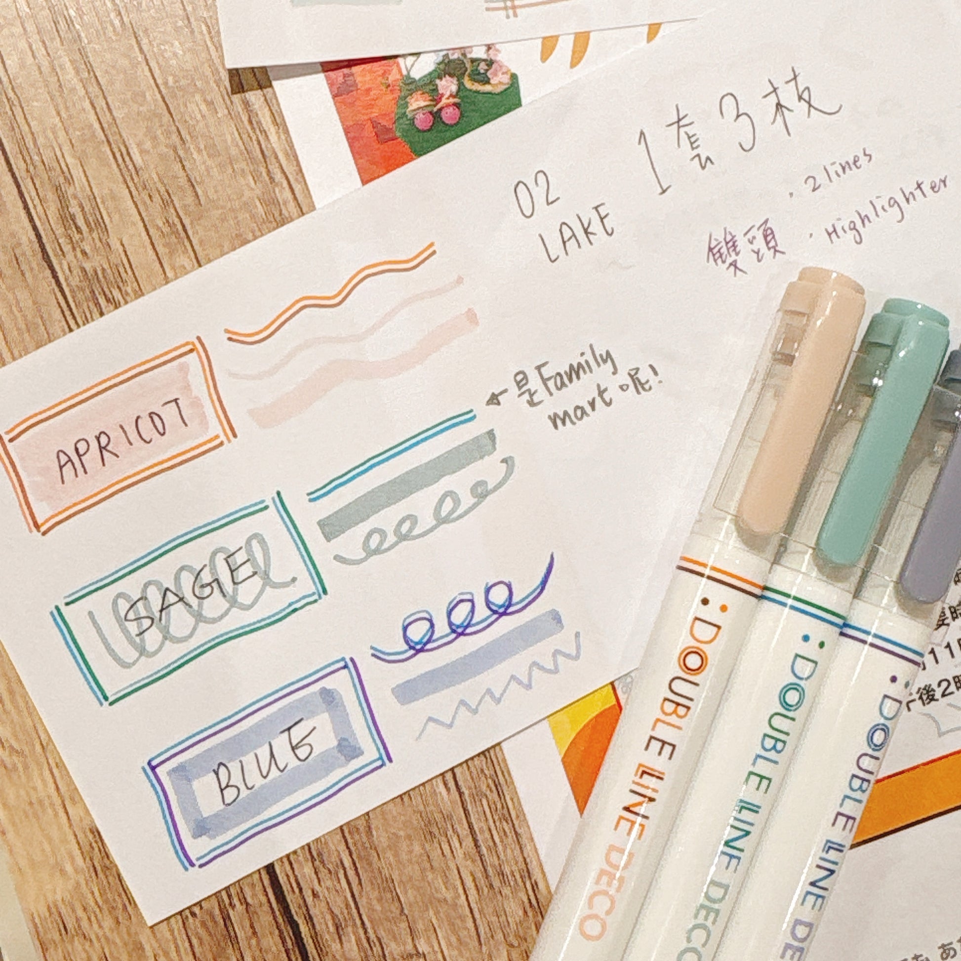 韓國 Double Line 雙頭柔和色系螢光筆套裝 (一套3枝)