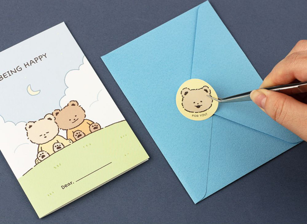 每張心意卡包括信封一個及熊仔封口貼紙一枚