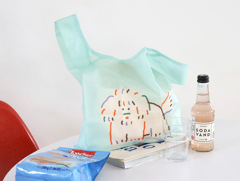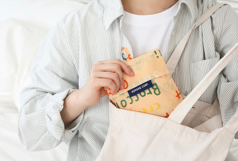 韓國文創品牌Romane家居副線的商品之一。可摺成細小尺寸放進手袋裡的環保袋,加上可愛的設計,外出購物時可以告別一堆不環保的膠袋呢!