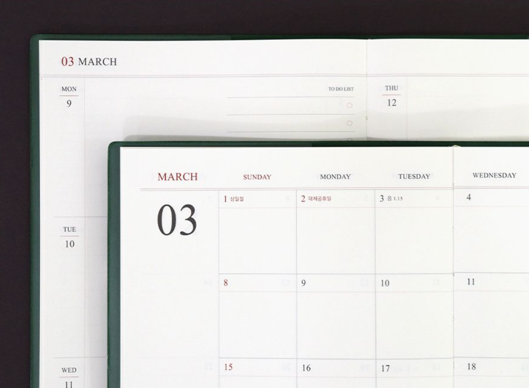 推出的A5 version , (size 為A4 的一半)能夠讓日程清楚地一目了然,monthly +weekly 格式+Free Notes的格式,可以更有效率記錄你的日程,A5 size 亦令書寫記錄的空間增加了不少,封面使用可以防水的合成皮革,可以更耐用。內頁紙質是100gsm 書寫紙,書寫時也不輕易透底。