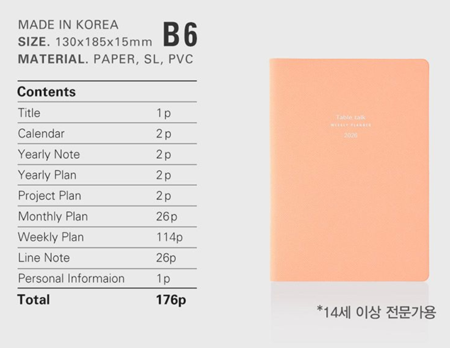 2026 韓國 Table Talk 時間規劃師 B6 [小號] 月+週計劃 🌈 * [預購貨品,下單後14天出貨]