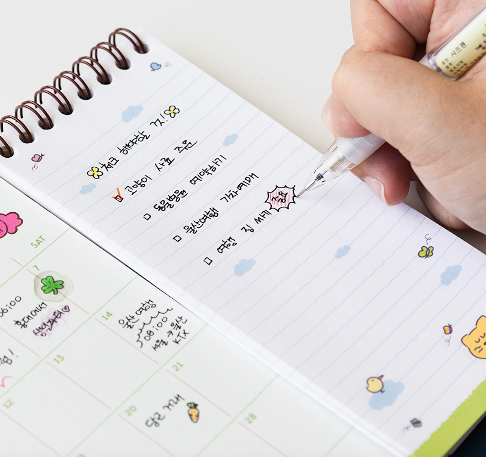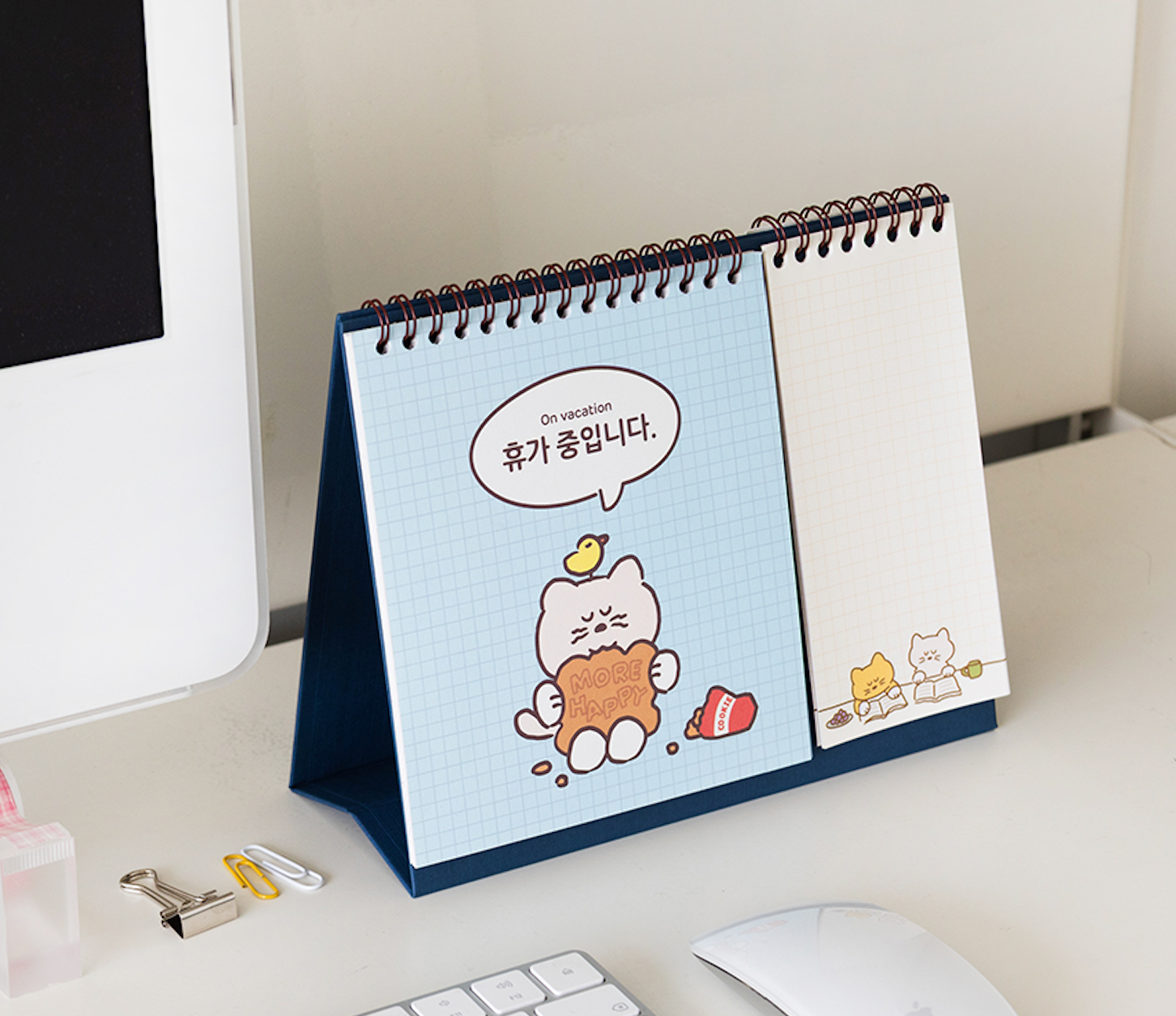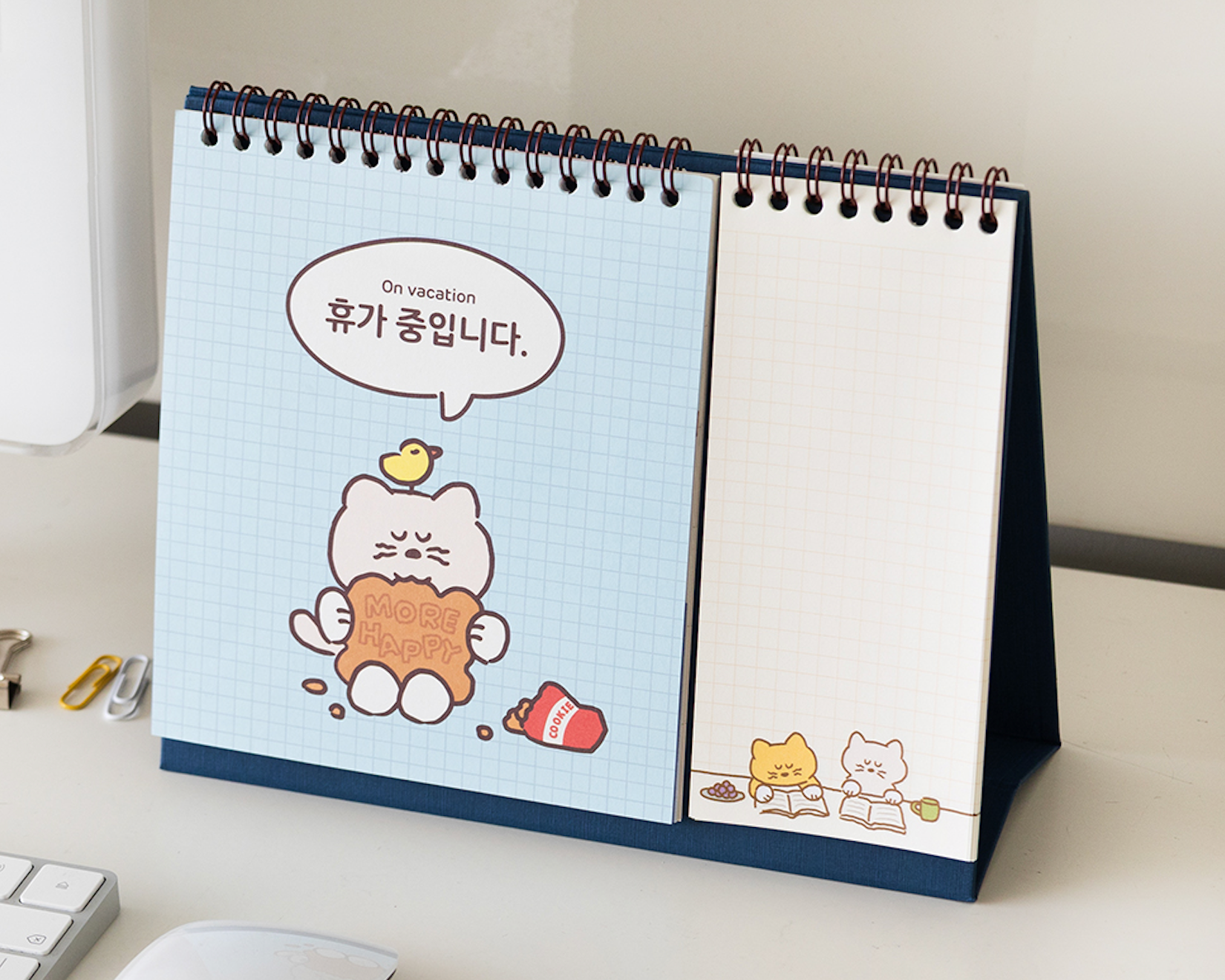 高效能又可愛的桌曆 - 一邊是月曆頁,另一邊是memo Pad (橫線22頁;方格22頁)