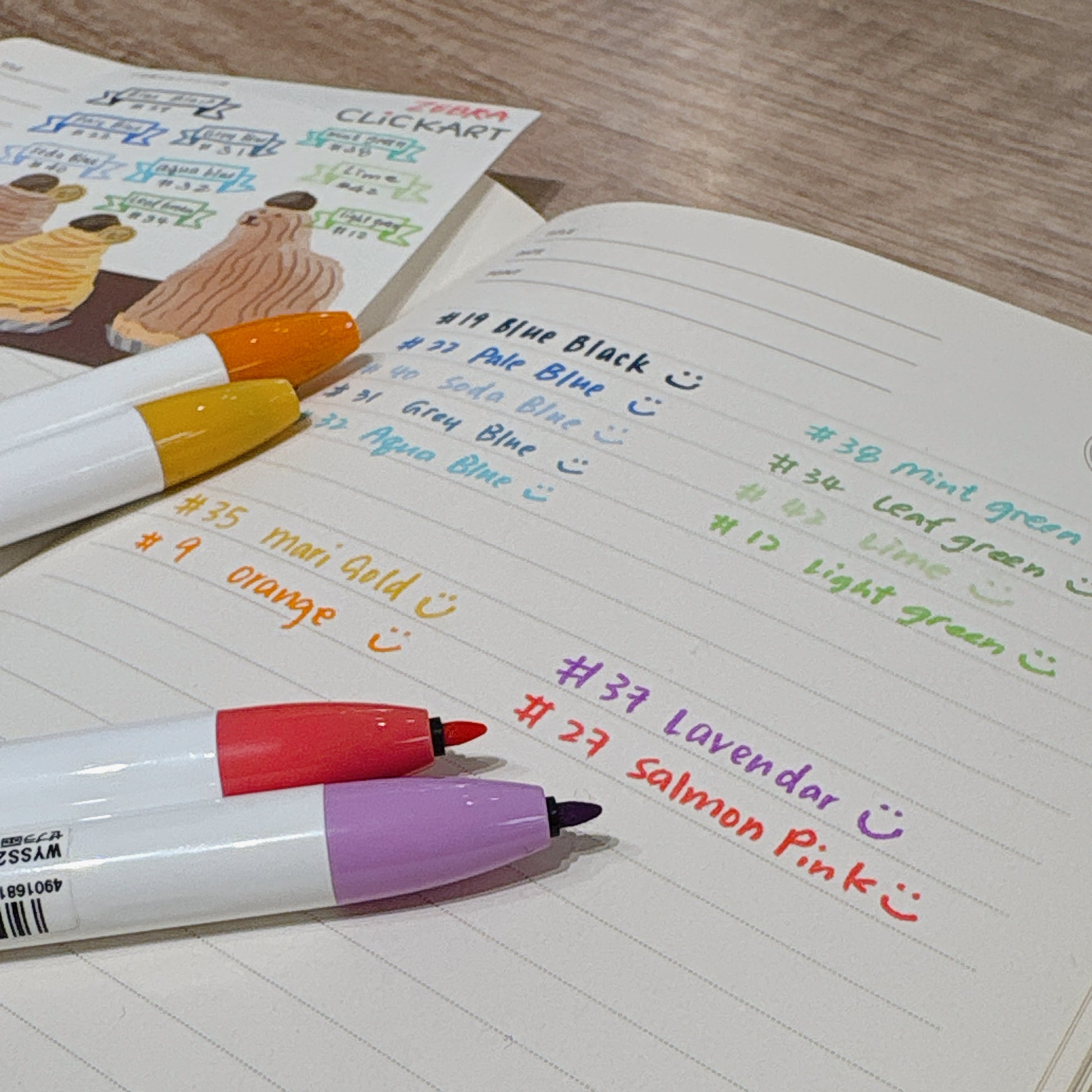 喜歡用Marker的朋友應該都遇到過忘記套上筆蓋或者開蓋後曝露空氣太長時間而乾掉, Zerba Click art 系列的0.6mm Marker 就可以完美避免以上問題。按壓式設計免除筆蓋帶來的不便,另外全新的水性墨水配方亦有助防止斷墨。簡約輕巧的Click art 無論是用作繪圖上色還是日常書寫都得心應手,最重要的是一共有過十種顏色任君選擇!!!